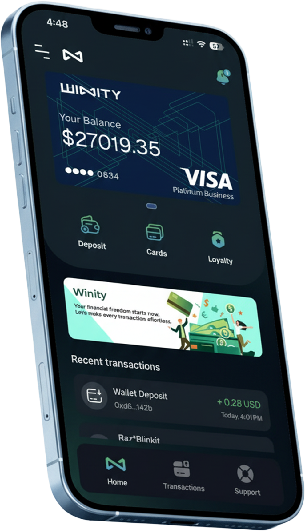 Once verified, you can deposit supported digital assets or bank transfers into your Winity Life account and manage your USD balance seamlessly across the platform.